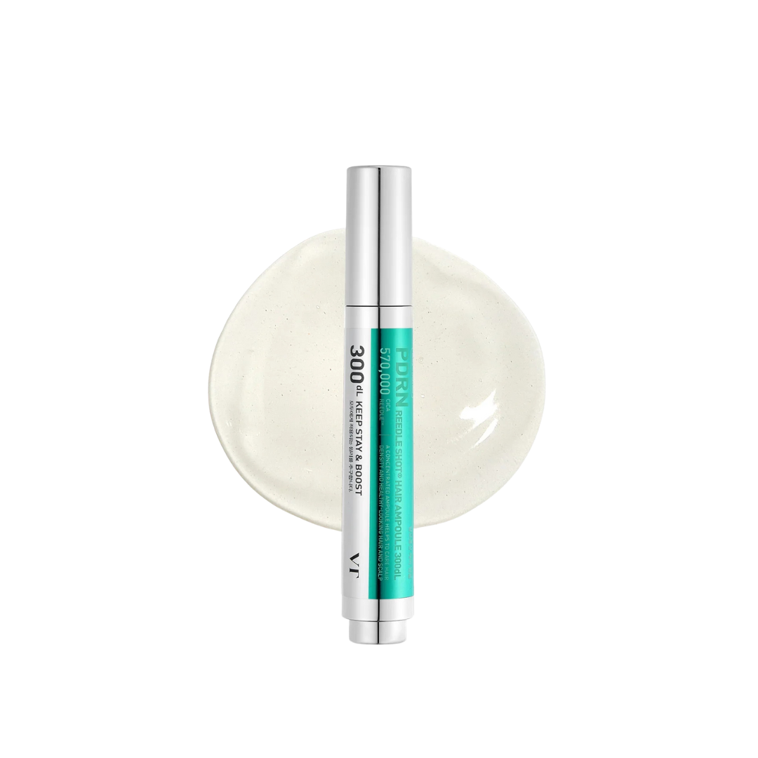 VT Cosmetics PDRN Reedle Shot Hair Ampoule 300dL er et avansert hodebunnsserum utviklet for deg som opplever hårtap, tynnere hår eller ubalanse i hodebunnen. Denne ampullen kombinerer VT sin innovative CICA REEDLE™-teknologi med plantebasert PDRN for å gi en mer intensiv og målrettet behandling enn vanlige hårserum.